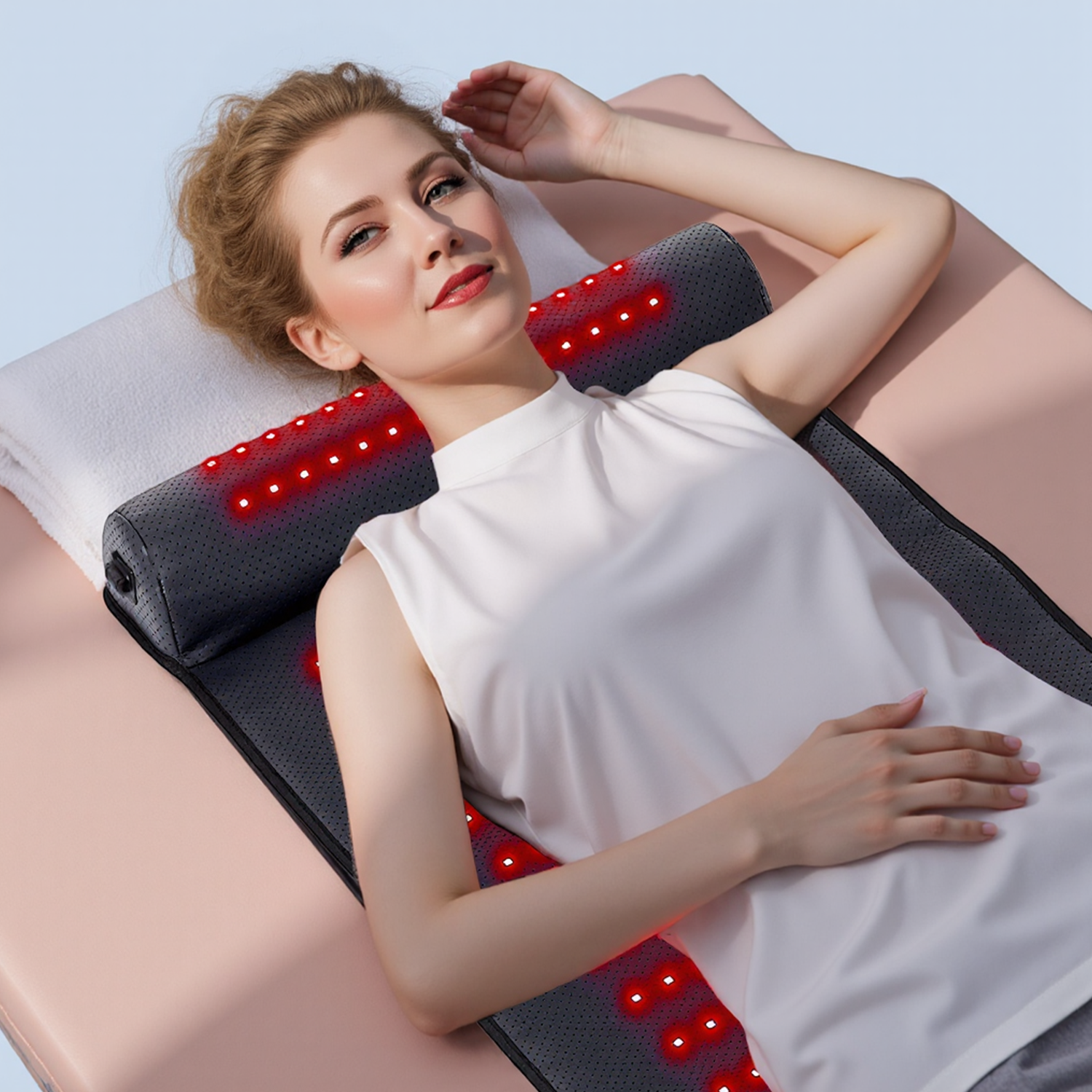 This red light therapy mat features a smart dual-purpose design—its 2.8-inch elevation offers optimal neck support, while flipping it provides focused relief for the lower back. One versatile, budget-friendly solution for full-body comfort.